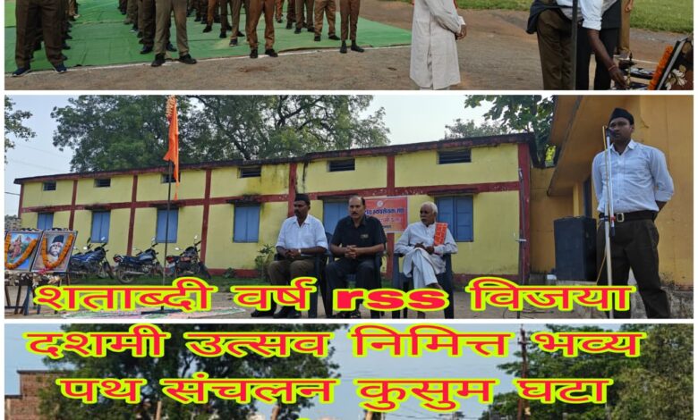 कुसुमघटा मंडल में आरएसएस ने विजयादशमी पर्व मनाया :शस्त्र पूजन उत्सव भी हुआ, राष्ट्र सेवा के माध्यम से भारत को शिखर पर ले जाना संकल्प