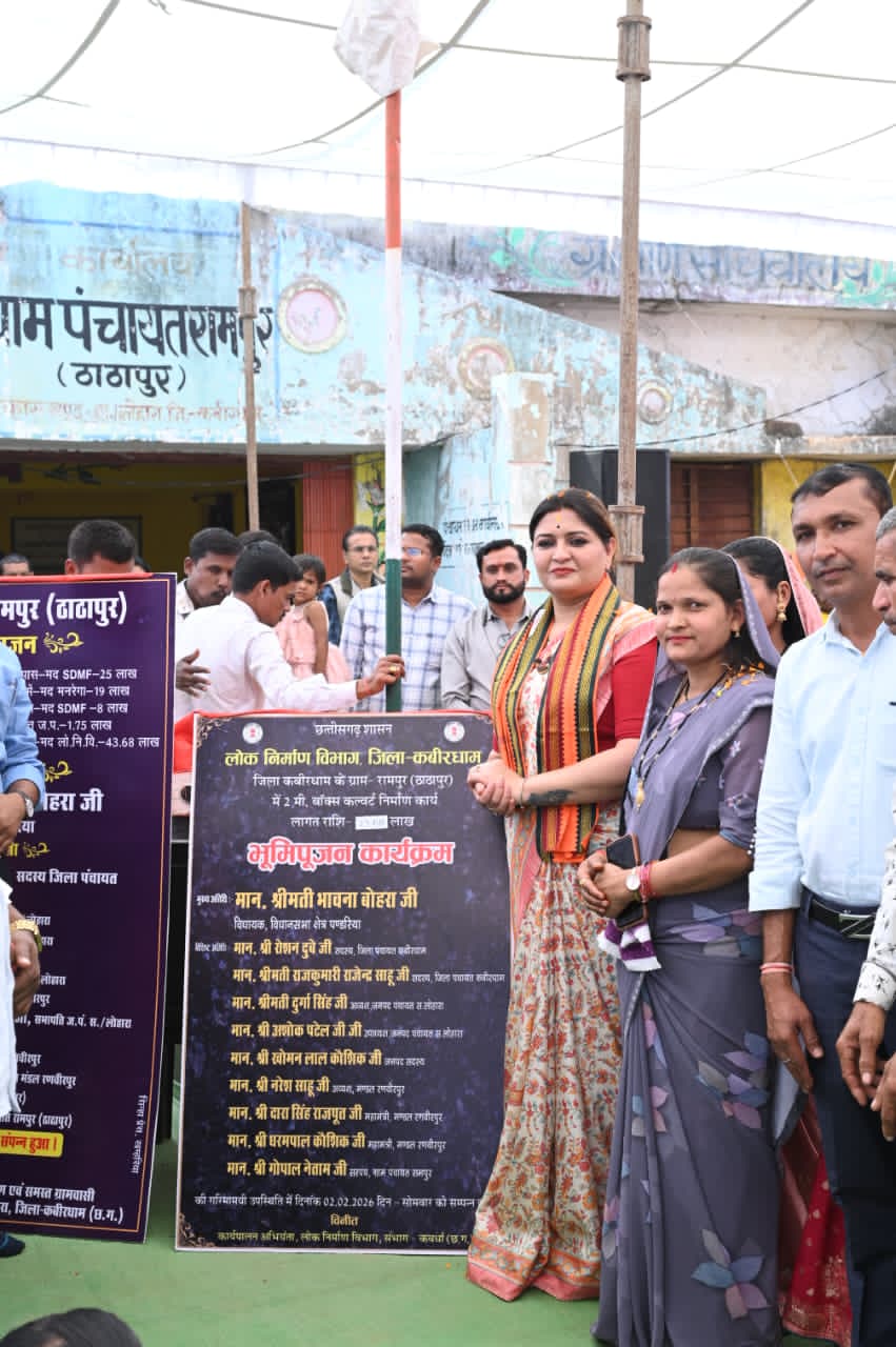 इस अवसर पर विधायक भावना बोहरा ने कहा कि पंडरिया विधानसभा के गांव–गांव तक विकास पहुंचाना हमारी सर्वोच्च प्राथमिकता है। सड़क, पुलिया, जल संरक्षण, नाली निर्माण एवं अन्य बुनियादी सुविधाओं के सुदृढ़ीकरण से ग्रामीणों के जीवन स्तर में सकारात्मक परिवर्तन आ रहा है। केंद्र एवं राज्य सरकार की जनकल्याणकारी योजनाओं को धरातल पर उतारते हुए क्षेत्र के सर्वांगीण विकास के लिए लगातार कार्य किए जा रहे हैं। आज इन सभी विकास व अधोसंरचना निर्माण कार्यों के भूमिपूजन से जल संरक्षण, आवागमन सुविधा और ग्रामीण अधोसंरचना को मजबूती मिलेगी।