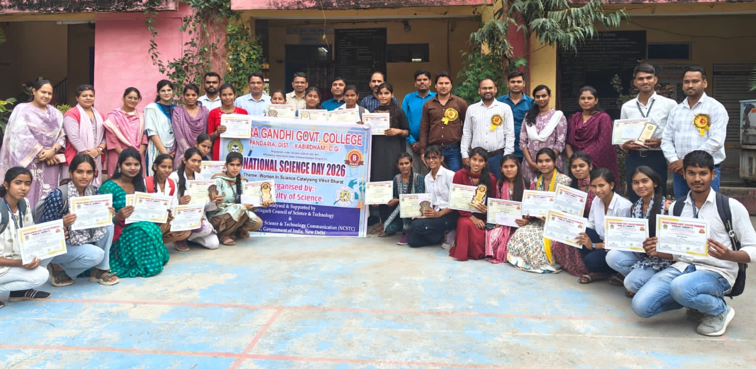 आशु चंद्रवंशी,कवर्धा। स्थानीय इंदिरा गांधी शासकीय महाविद्यालय पंडरिया के विज्ञान संकाय द्वारा राष्ट्रीय विज्ञान दिवस 2026 का गरिमामय आयोजन किया गया। यह कार्यक्रम छत्तीसगढ़ काउंसिल ऑफ साइंस एंड टेक्नोलॉजी, रायपुर और राष्ट्रीय विज्ञान एवं प्रौद्योगिकी संचार परिषद भारत सरकार, नई दिल्ली द्वारा प्रायोजित और समर्थित था।