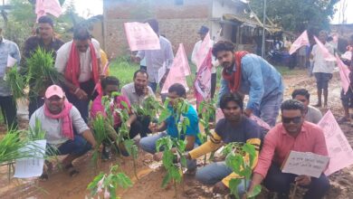 जर्जर मार्ग में बेशरम का पेड़ लगाकर ग्रामीण एवं जोगी कांग्रेसियों ने किया प्रदर्शन :11 सूत्रीय मांगो को लेकर राज्यपाल के नाम सौंपा ज्ञापन