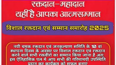 नयी चमक रक्तदान समिति के 10 वें स्थापना दिवस : 20 दिसंबर को कवर्धा में विशाल रक्तदान शिविर और रक्तवीर सम्मान समारोह का होगा भव्य आयोजन