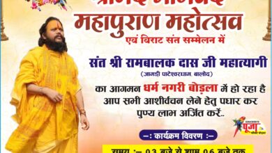 श्रीमद भागवत महापुराण महोत्सव एवं विराट संत सम्मेलन में संत श्री रामबालक दास जी महात्यागी का बुधवार को बोड़ला में होगा आगमन